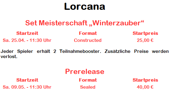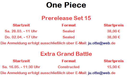 Um einen reibungslosen Ablauf zu garantieren, findet euch bitte 20 Miunten vor Eventbeginn ein.